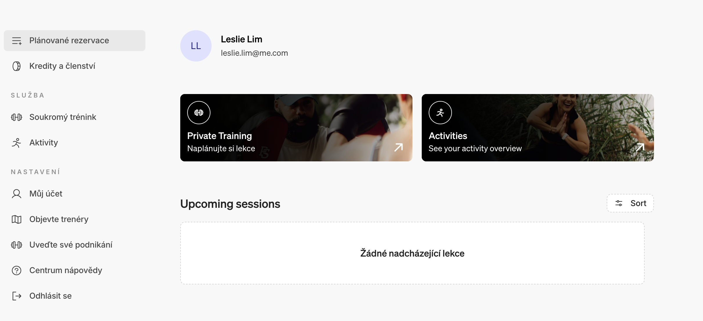 Pokud chcete změnit trenéra, přejděte na Soukromé tréninky > Vyberte lekci > Upravit > Změnit trenéra / Změnit termín nebo Zrušit.