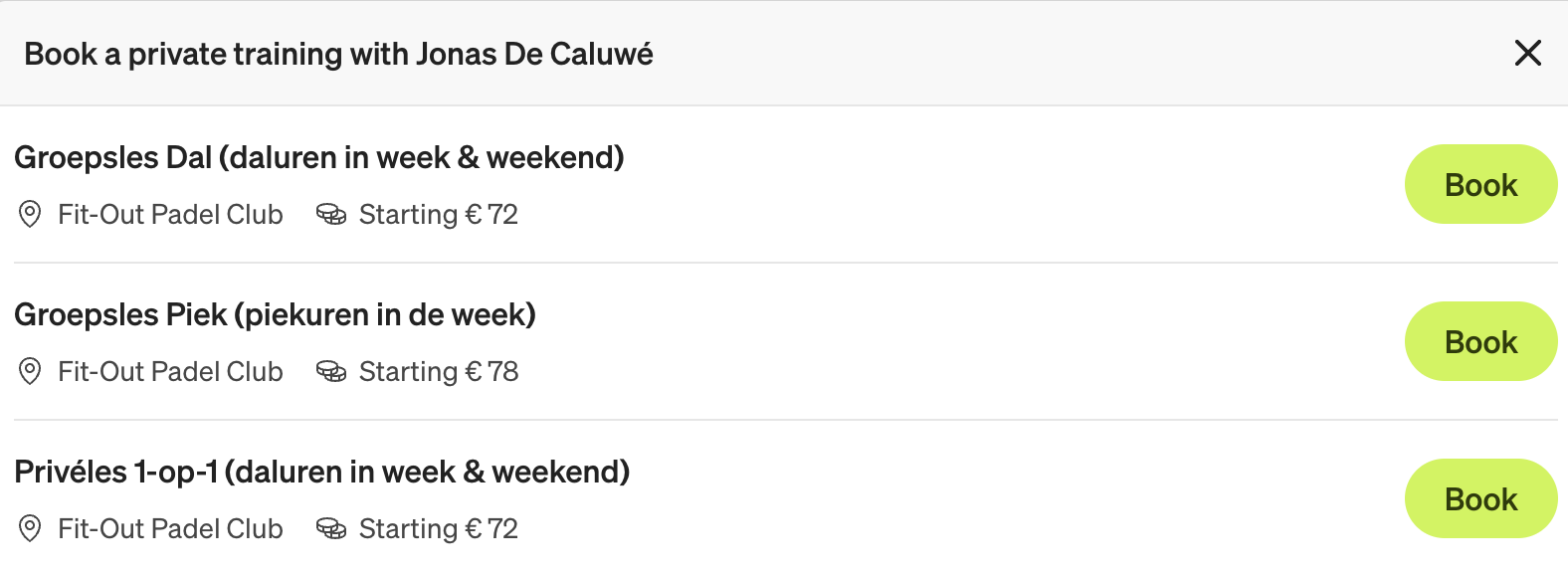 Under ‘Trainers’, you can find the trainer you’d like to book a training with.