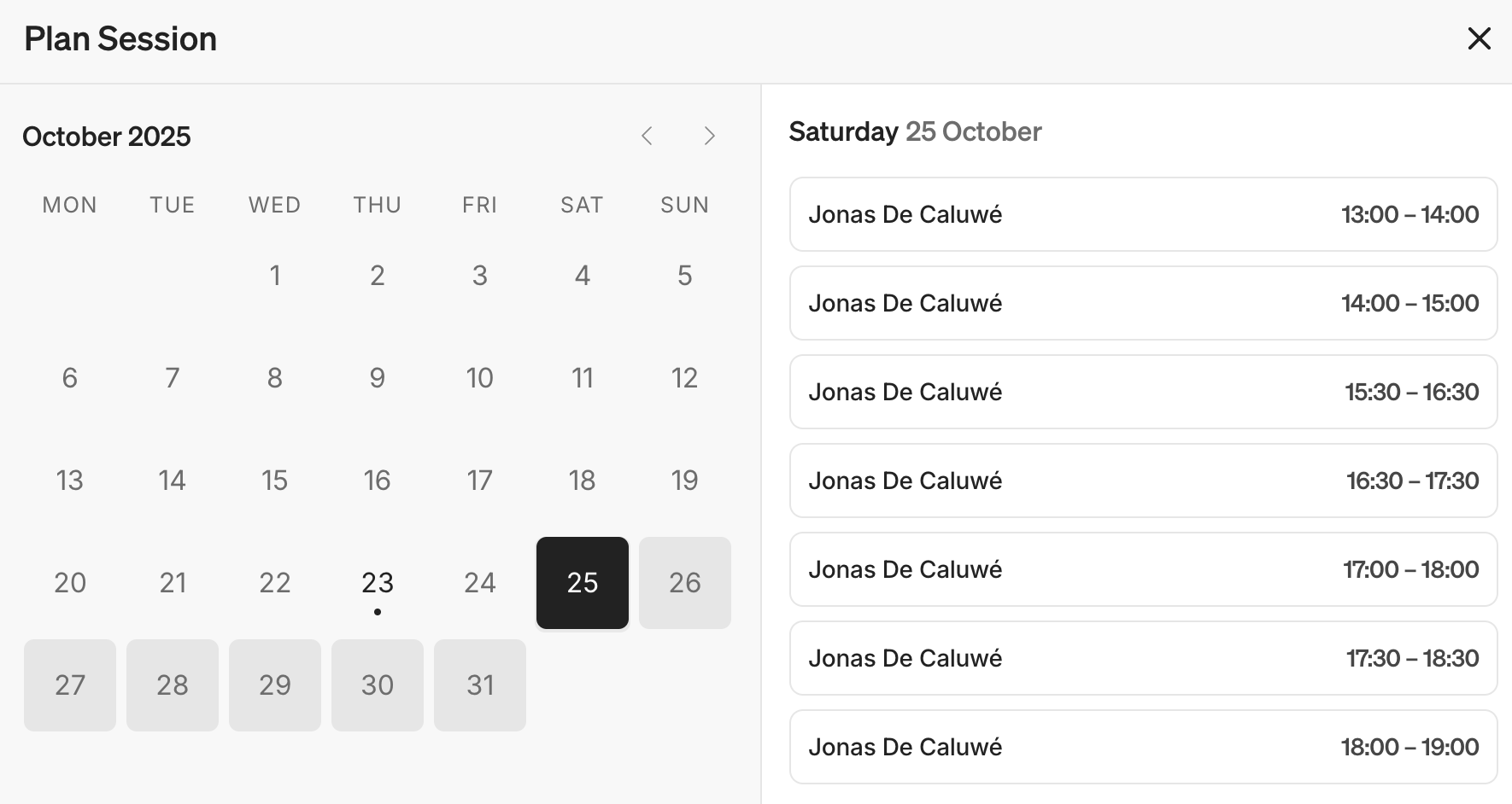 By clicking ‘Plan’, you can check the trainer’s availability.
