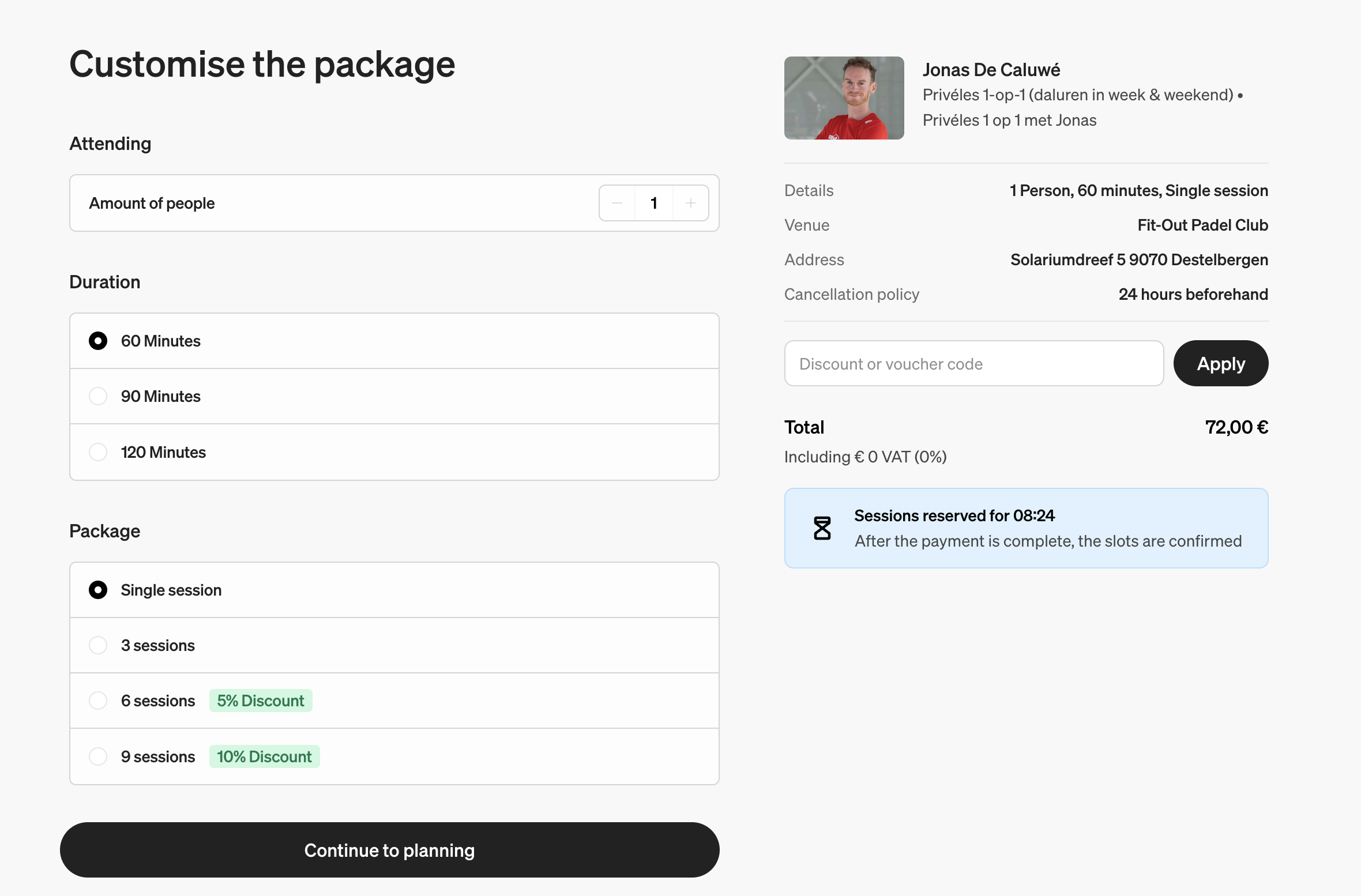 Once you’re ready, click ‘Continue to planning’ to finalize your booking.